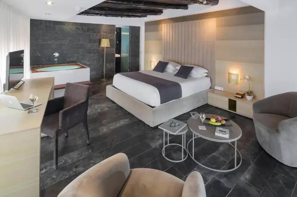 Hotel Boutique Ses Pitreras se encuentra ubicado en Valladolid 1, 07839 Bahía de San Antonio, España. Este establecimiento ofrece una amplia gama de servicios incluyendo restaurante, bar, piscina al aire libre y WiFi gratis. Las habitaciones disponen de té/cafetera y son no fumadoras, con opciones adicionales como habitaciones familiares. Los huéspedes pueden disfrutar de un desayuno maravilloso y contar con transporte desde el aeropuerto. Cerca del hotel hay varios puntos interesantes como Ibosim Obrador de Cerveza Artesana a 250 metros, Bar Piraña a 1,2 km y Playa de Pinet a 1,7 km. Además, Magon está situado a solo 30 metros del alojamiento.
